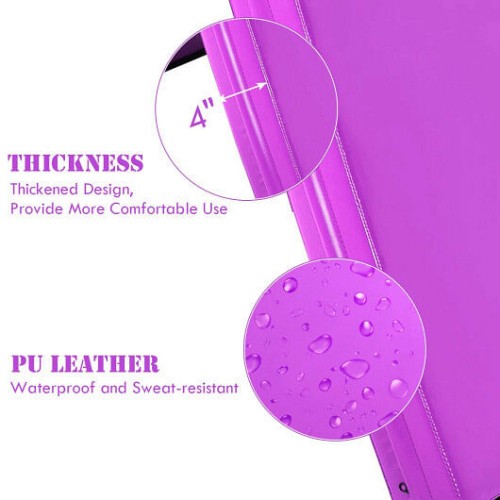 Specifications: Material: PU EPE Color: Blue/Purple Product size: 6' x 2' x 1.6" (L x W x H) Folded dimensions: 3' x 2' x 3.2" (L x W x H) Net weight: 4 lbs Package includes: 1 x Gymnastics mat 1 x User's manual-Widely used as yoga mat dancing mat exercise mat etc-Non-deformable and thicken mat can effectively prevent injury from exercise-Foldable design facilitates storage and saves space-Lightweight and handles design provide convenience for transportation-Hook and loop fastener allows it to be tightly connected with other mats-The cover with zipper can be removed for cleaning-High-quality PU leather surface is non-toxic and waterproof